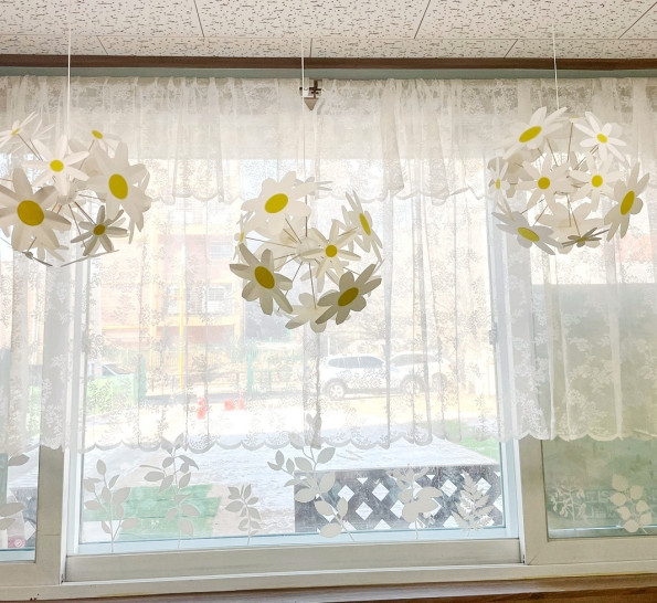 봄, 봄환경구성, 새학기환경구성, 데이지볼, 데이지모빌, 모빌