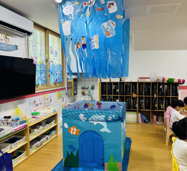 아이들이 행복해하는 사진을 보니 너무 뿌듯하네요해저터널로 인해 교실 분위기도 바닷속같고 아이들이 재미있어하니 너무 다행입니다.