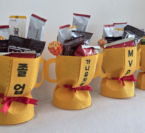 트로피 받아서 기분 좋은데 트로피 안에 간식이라니 아이들이 진짜 행복했을 것 같습니다.