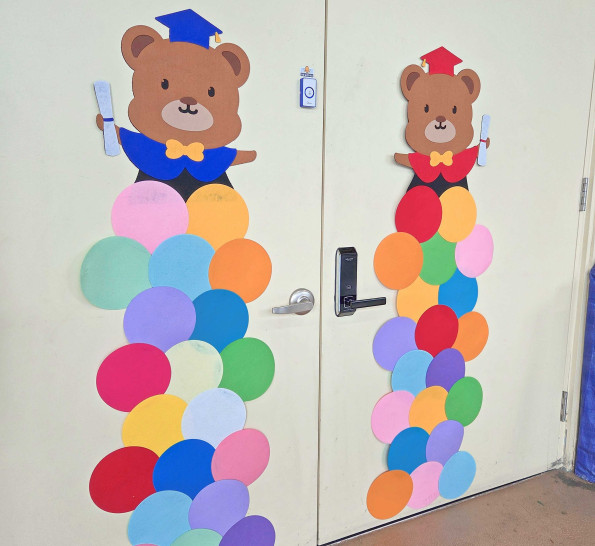 졸업 곰돌이 풍선기둥 포토존으로 현관분위기가 확 살아나지요.