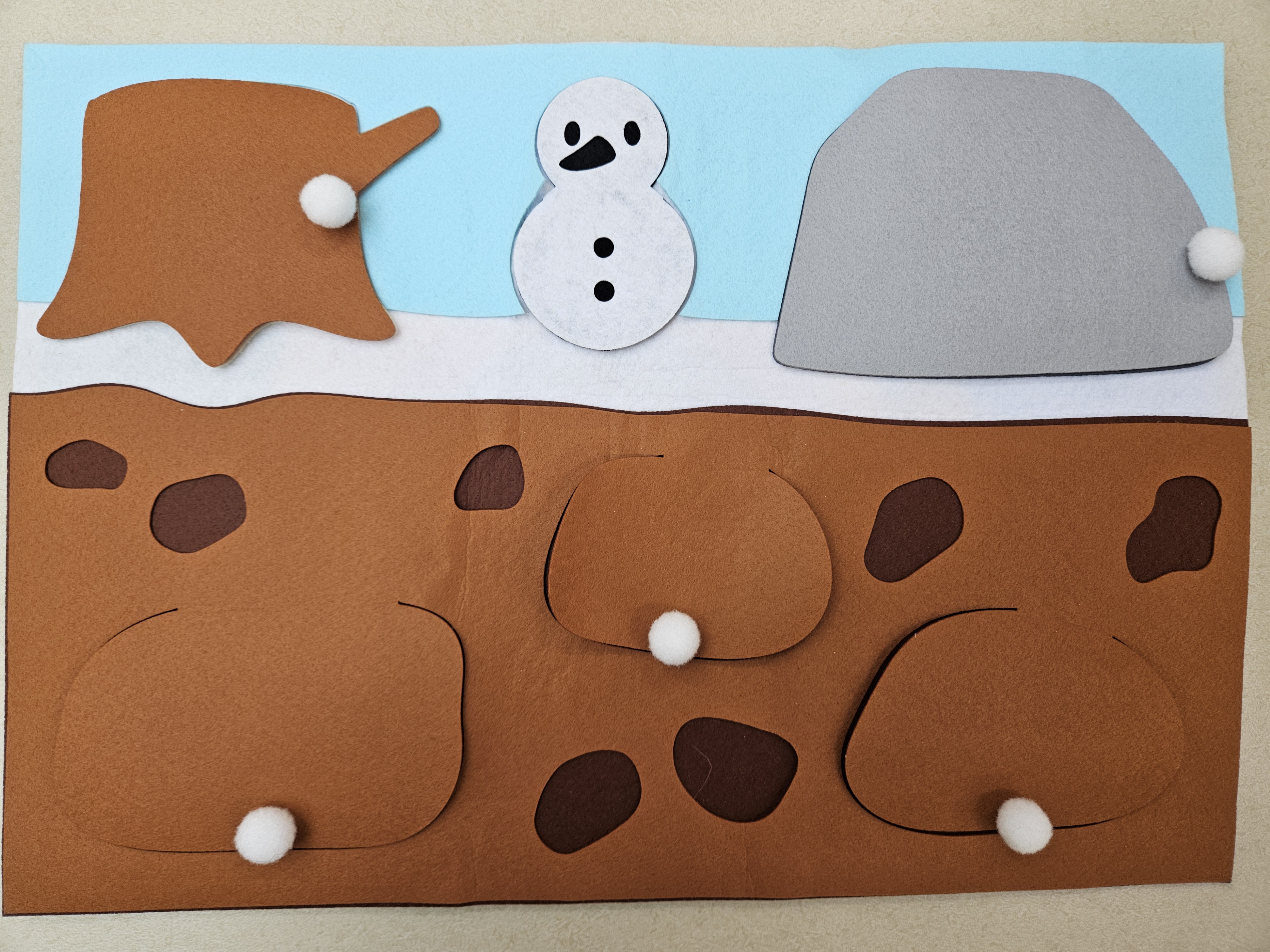 탄탄한 펠트재질이여서 무한 열었다 닫았다가를 해도 튼튼하고 “여기에는 누가 살까?”, “왜 숨어 있을까?” 하며 자연스럽게 관심을 보였답니다. 아이들이 평소 좋아하는 동물들이기도하고 손으로 만지고 조작하는 활동이라 아이들의 참여도와 집중도가 높았습니다. 겨울잠을 자는 동물, 계절 변화, 자연의 모습 등을 아이들이 즐겁게 배울 수 있어서 겨울철 수업에 활용도 높은 교구랍니다❄️