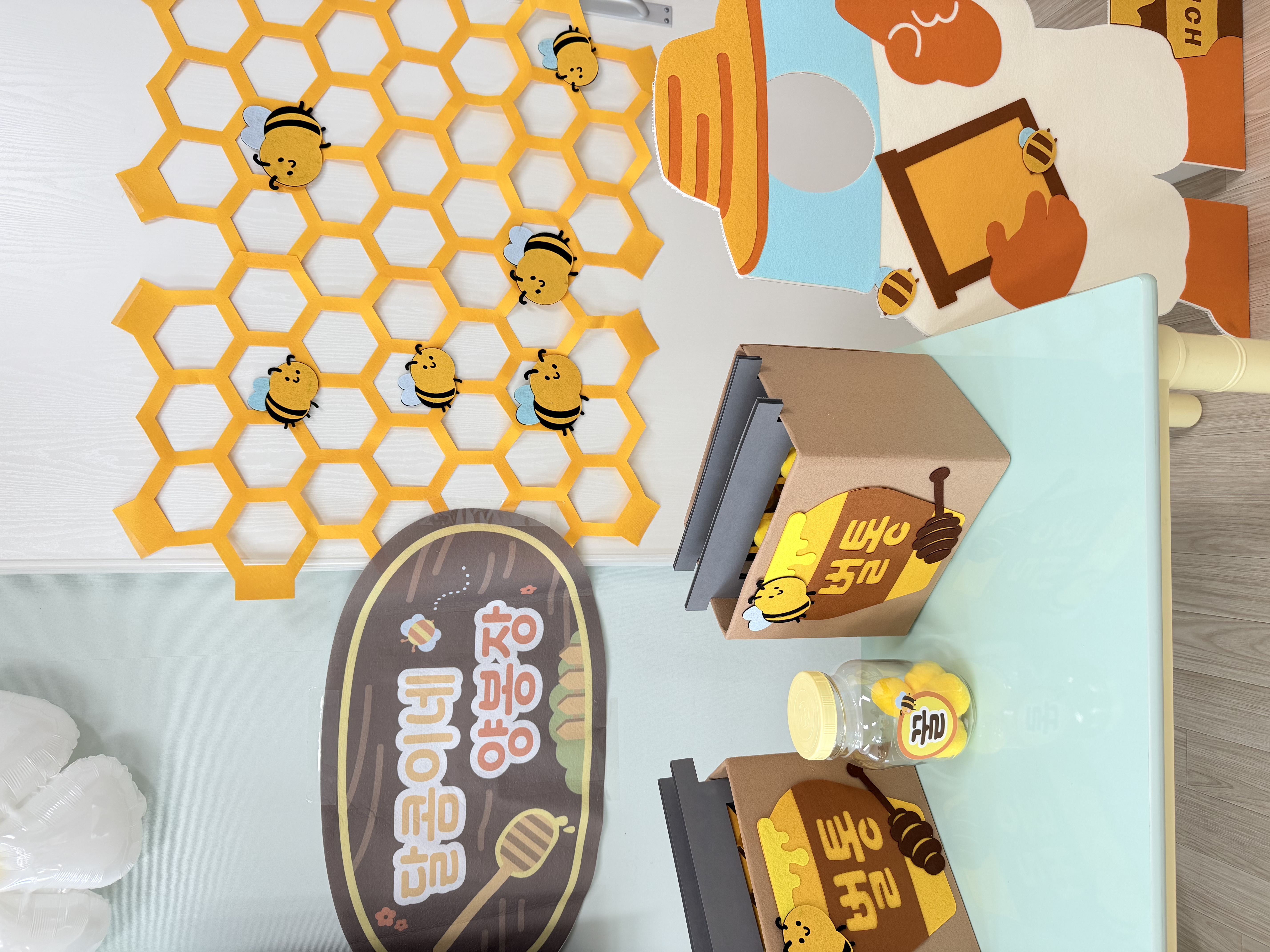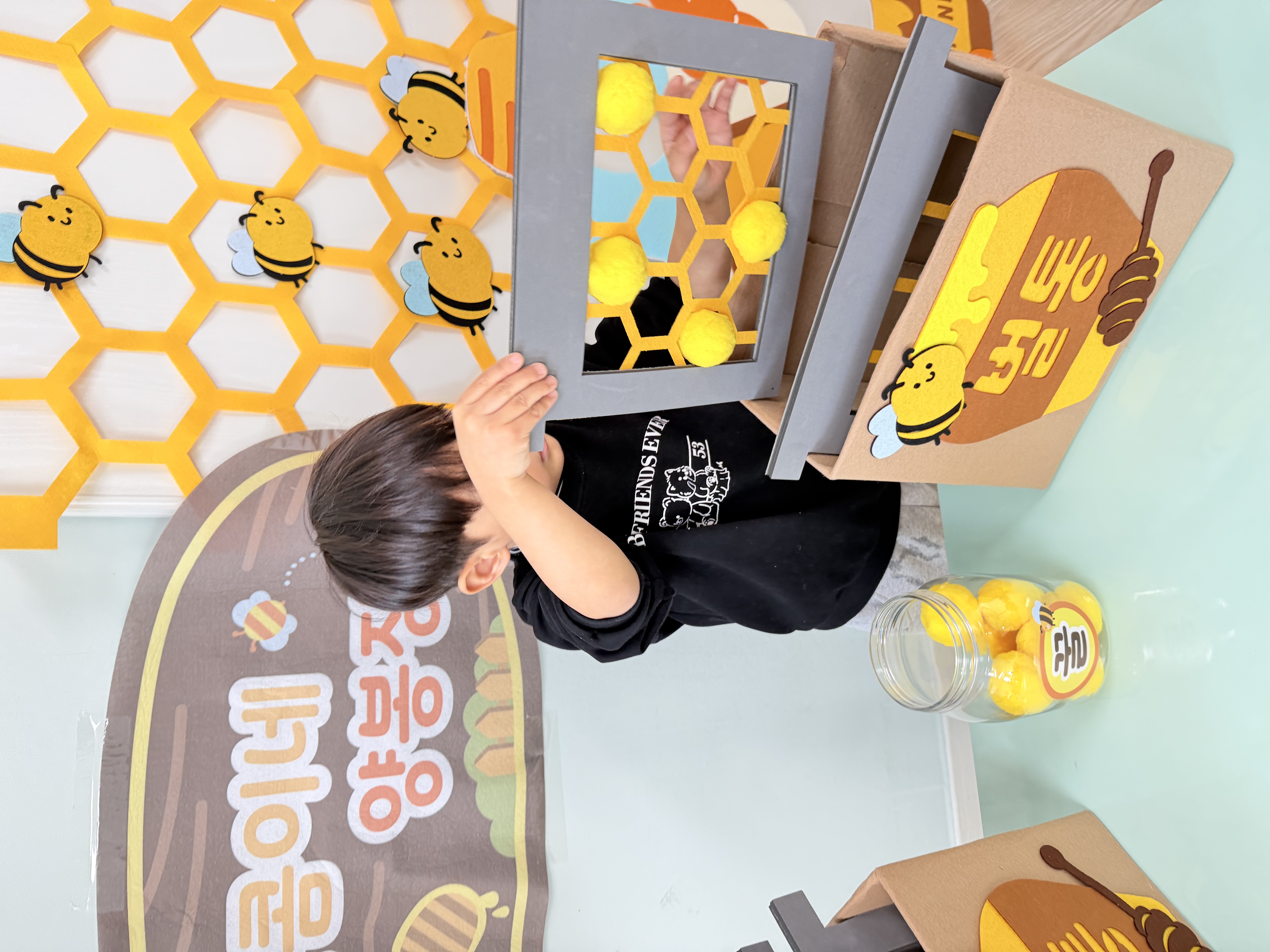 교실에도 봄이 왔어요!!! 색감이 너무 좋아서 교실이 엄청 밝아졌어요!! 사진도 너무 잘나오고 무엇보다 벌꿀놀이는 소근육에도 도움이 될 것 같아요!!